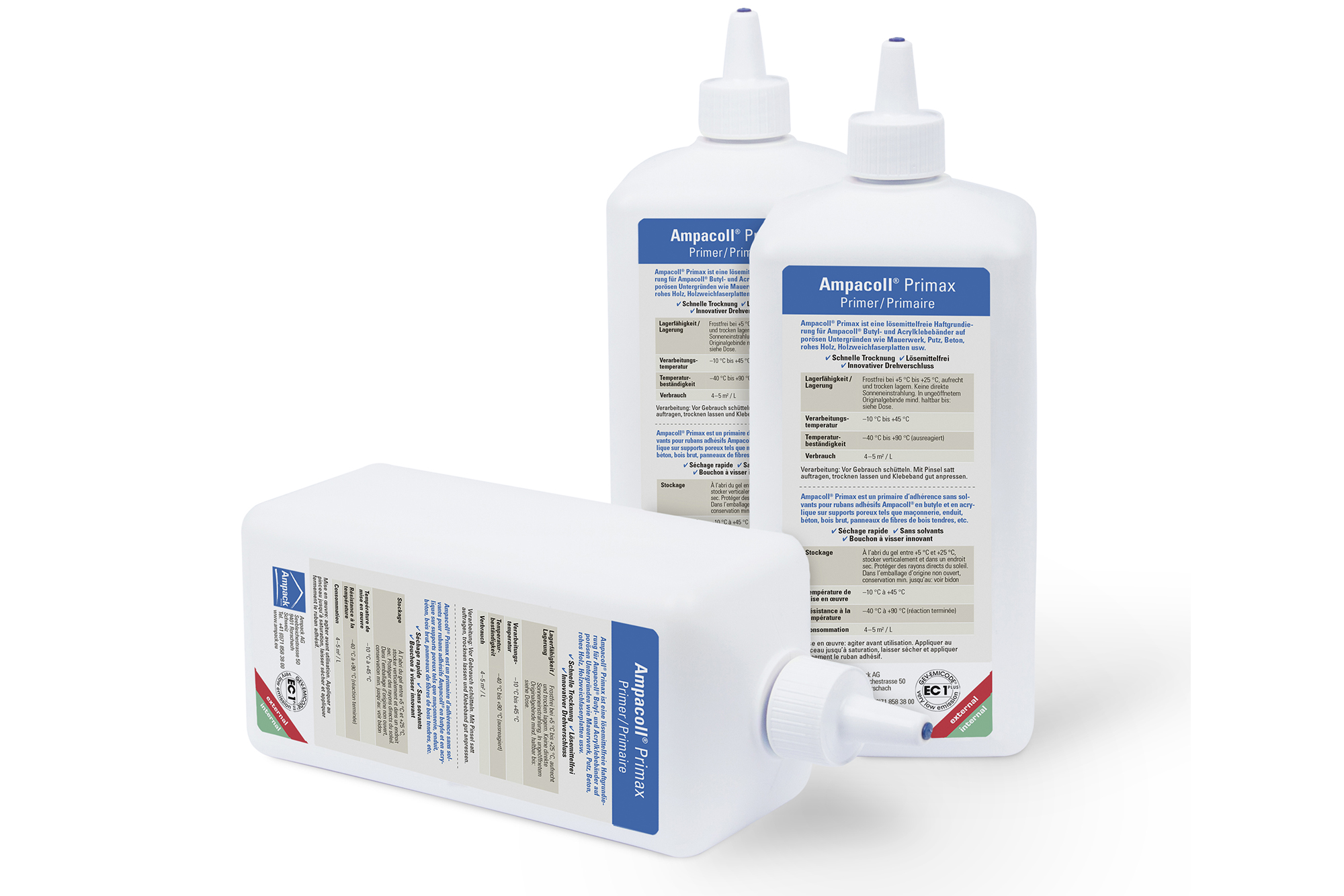 Ampacoll Primax ist ein lösemittelfreier Primer für Ampacoll Butyl- und Acrylklebebänder auf porösen untergründen wie Mauerwerk, Putz, Beton, rohes Holz, Holzweichfaserplaten usw. www.ampack.ch